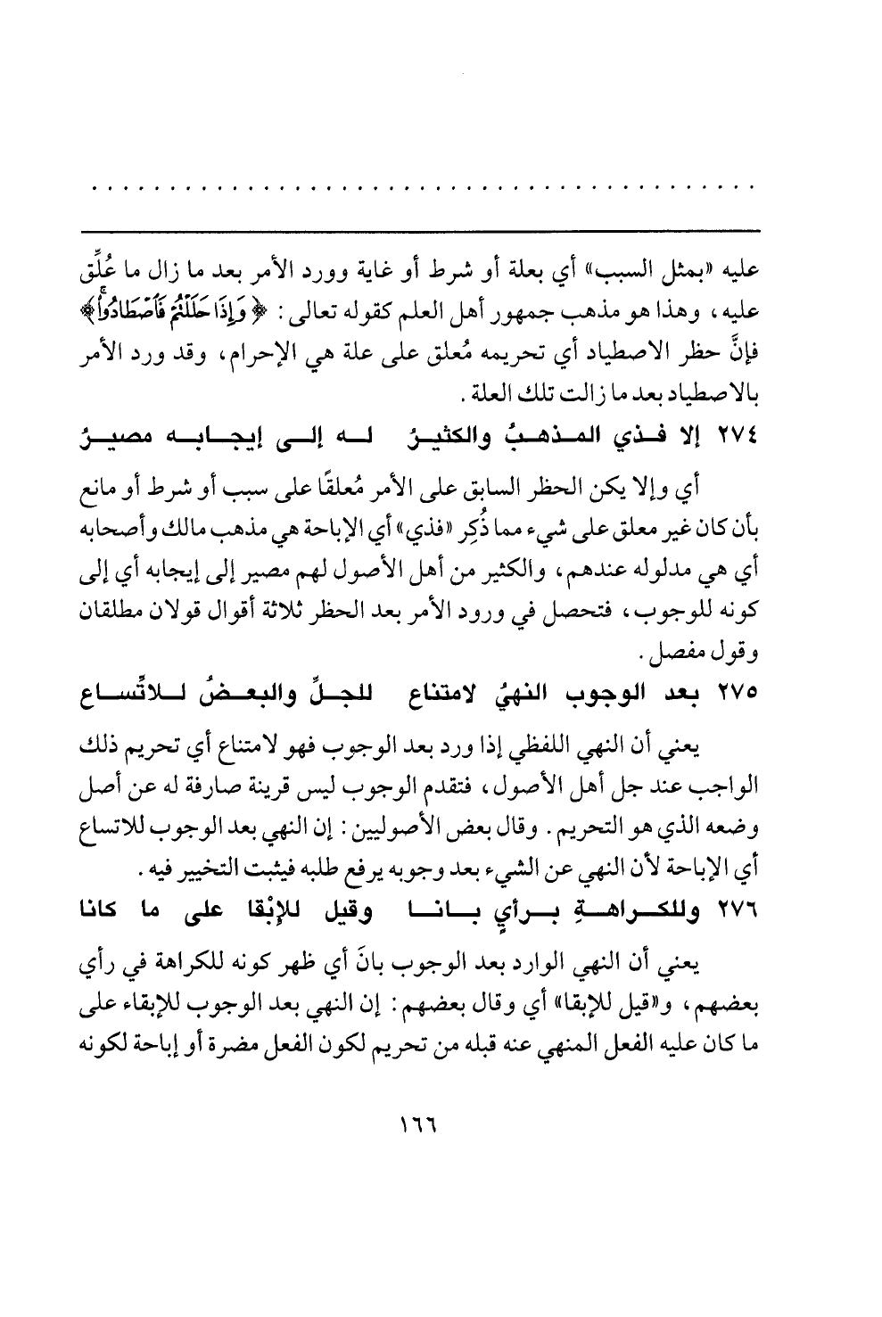 275 بعد الوجوب النهي لامتناع للجل والقرو للائساع