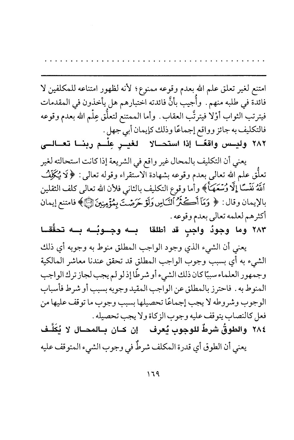 284 والطوق شرط للوجوب ئعرف إن كان بالمحال لا يكلف
