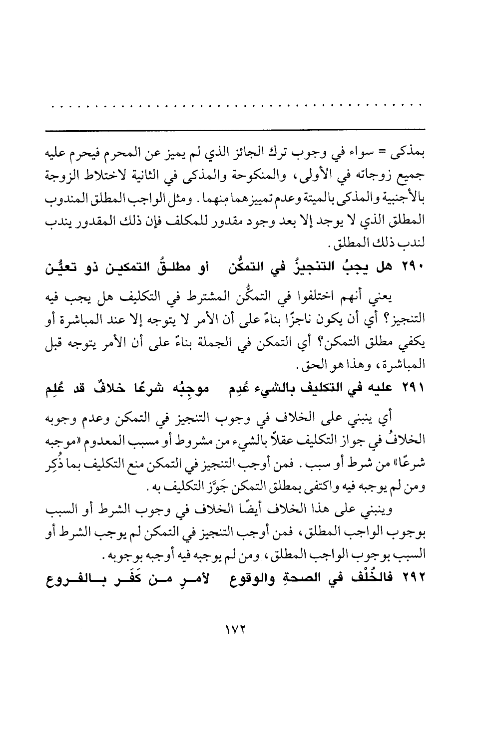291 عليه في التكلتف بالشيء غدم موجئه شرعا يف قد غلم