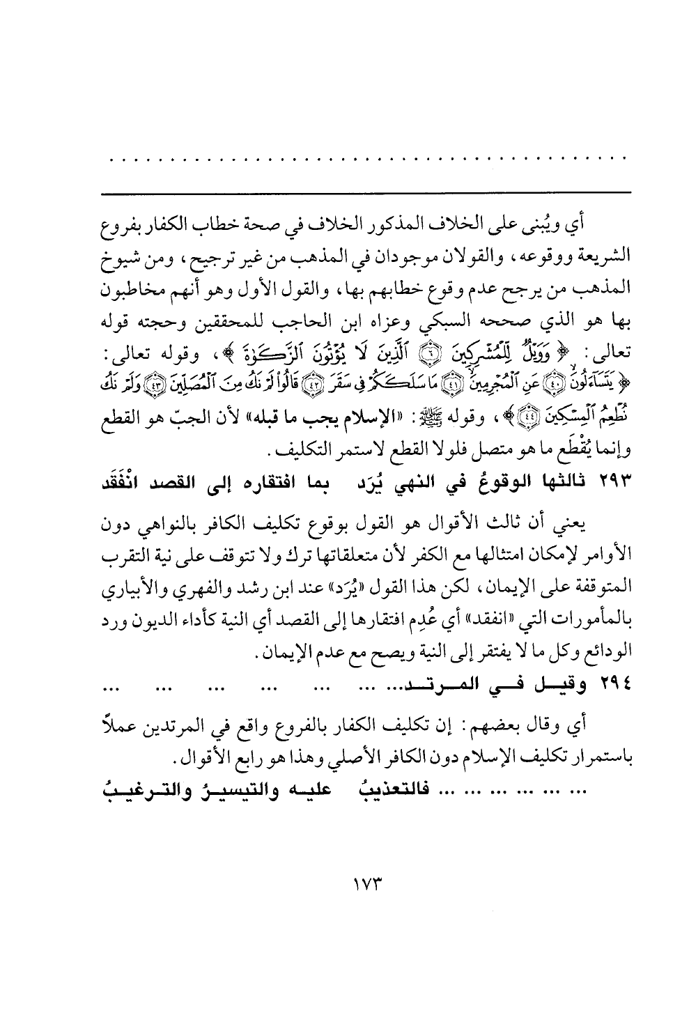 المتوقفة على الإيمان، لكن هذا القول "يرد" عند ابن رشد والفهري والابياري