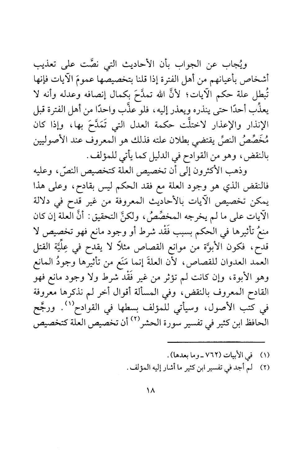 الحاف! ظ ابن كثير في تفسير سورة الحشر (2) أن تخصيص العلة كتخصيص
