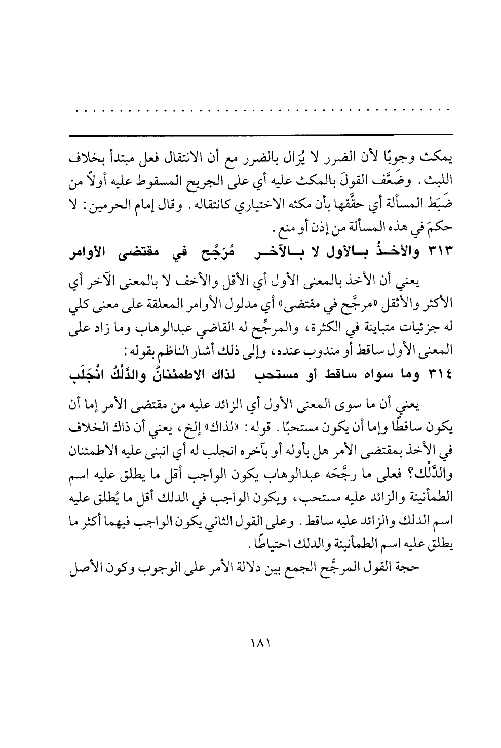 314 وما سواه ساقط أو هيب لذاك] لاطمئئان والدلك اذجلب