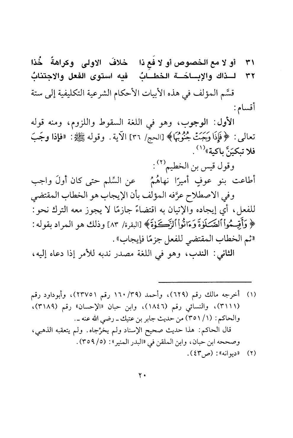 قسم المؤلف في هذه الابيات الأحكام الشرعية التكليفية إلى ستة