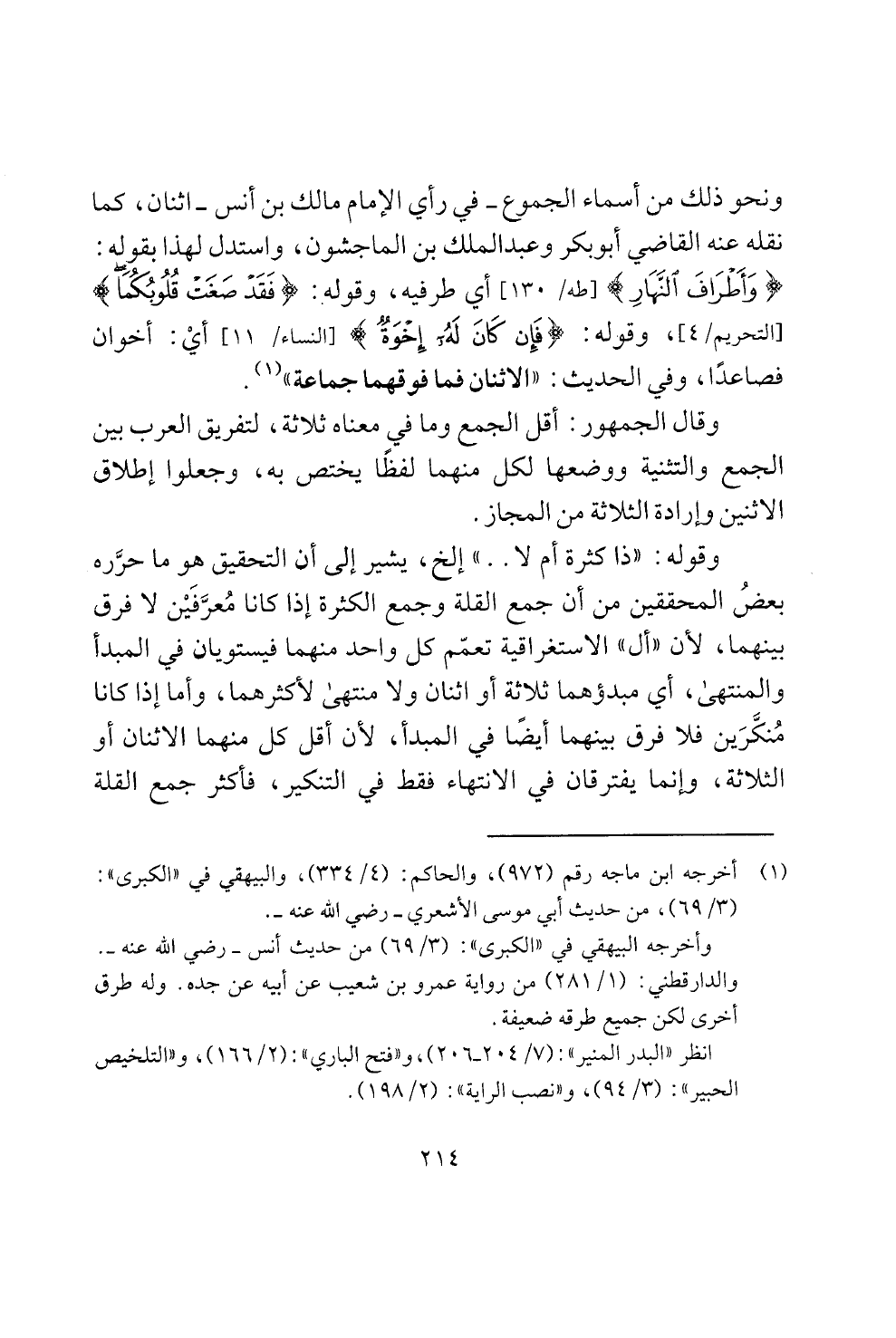ونحو ذلك من أسماء الجموع - في رأي الامام مالك بن أنس - اثنان، كما