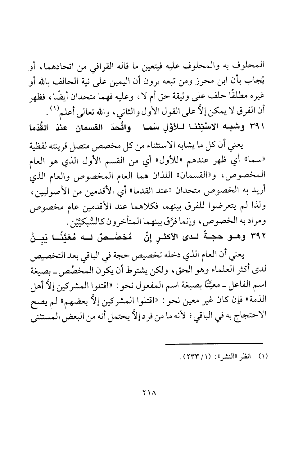 391 وشبه الاستثنا للأول سما واتحد القسمان عند القدما