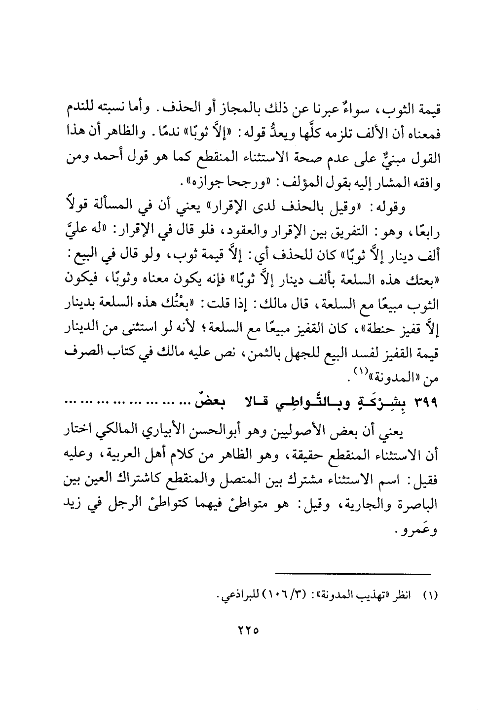"بعتك هذه السلعة بالف دينار إلا ثوبا" فإنه يكون معناه وثوبا، فيكون
