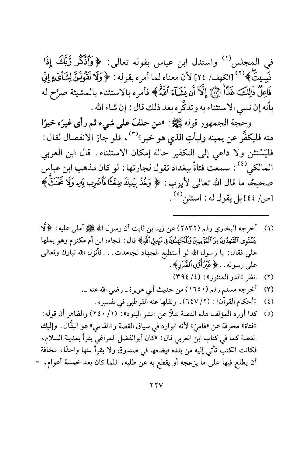 في المجلس (1) واستدل ابن عباس بقوله تعالى: <و دبر ربك ذا