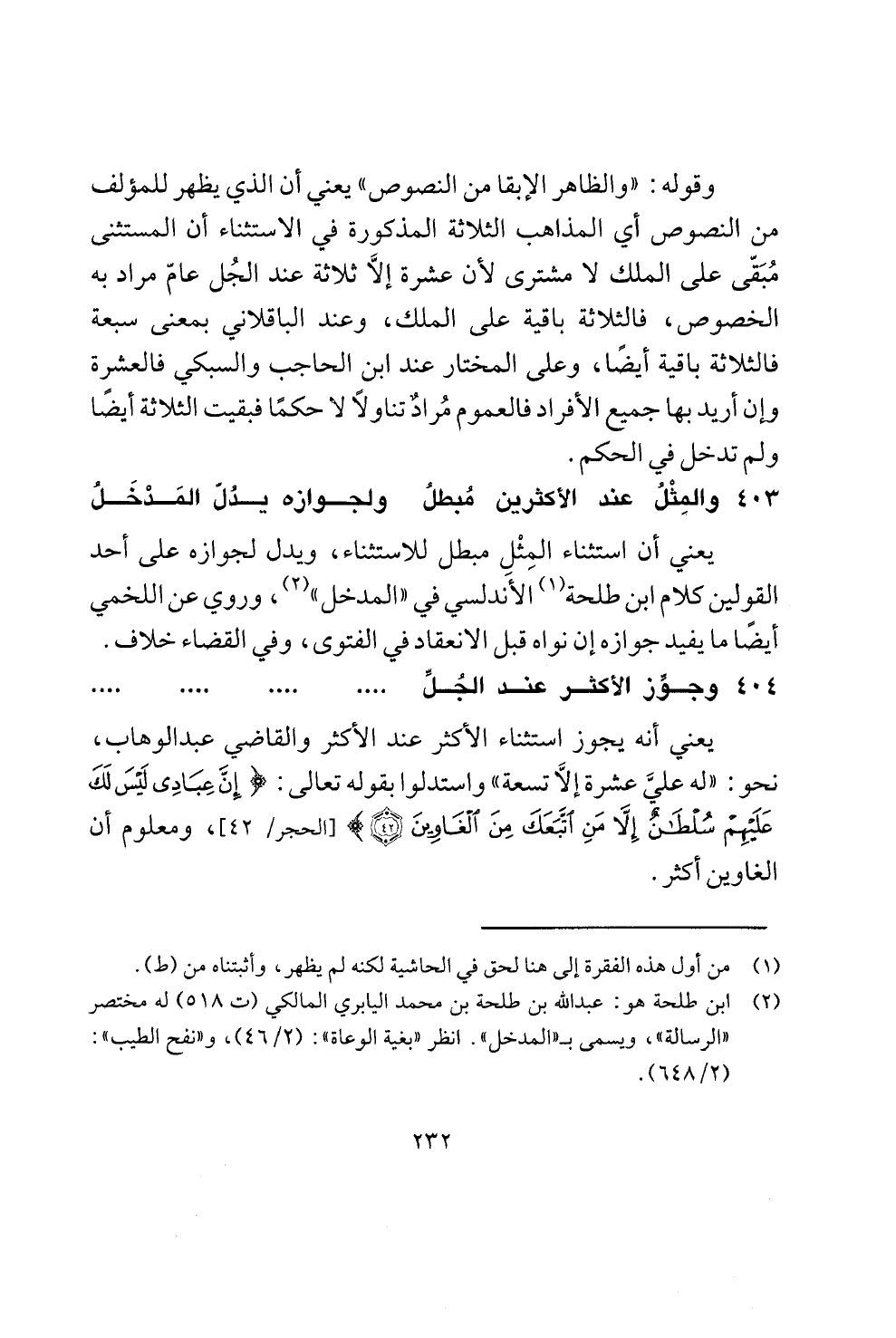 وقوله: "والظاهر الإبقا من النصوص " يعني أن الذي يظهر للمؤلف