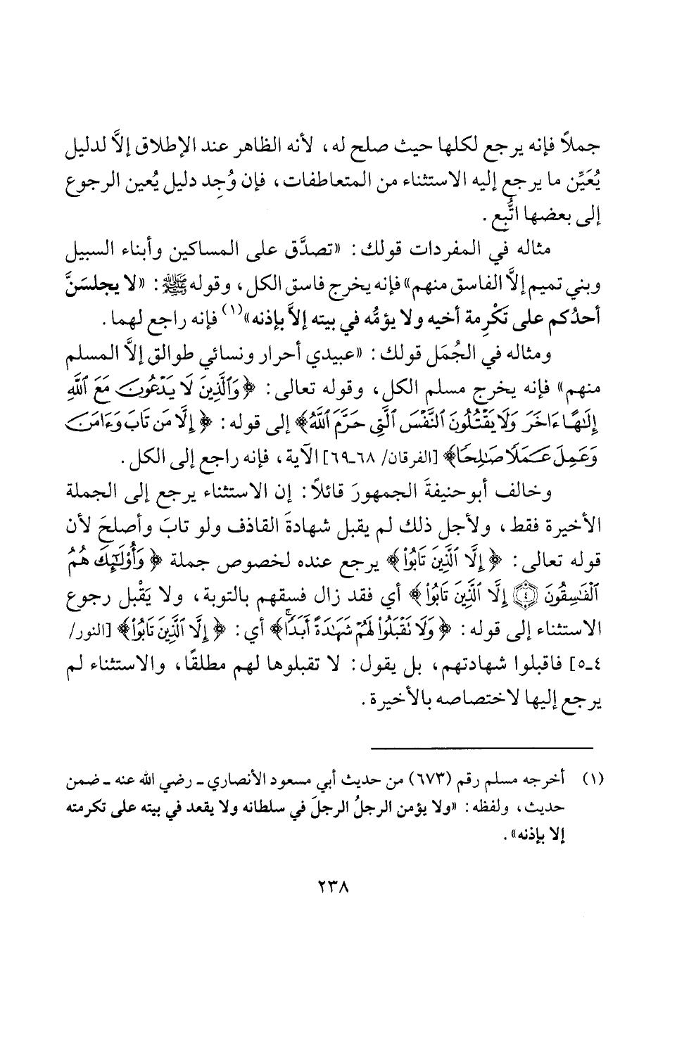 وخالف ابوحنيفة الجمهور قائلا: إن الاستثناء يرجع إلى الجملة