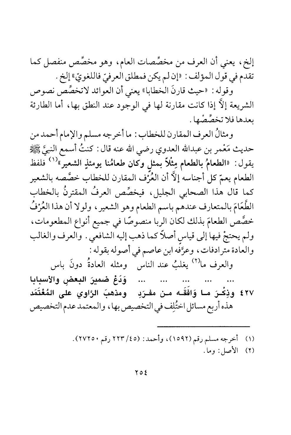 ومثال العرف المقارن للخطاب: ما خرجه مسلم والامام أحمد من