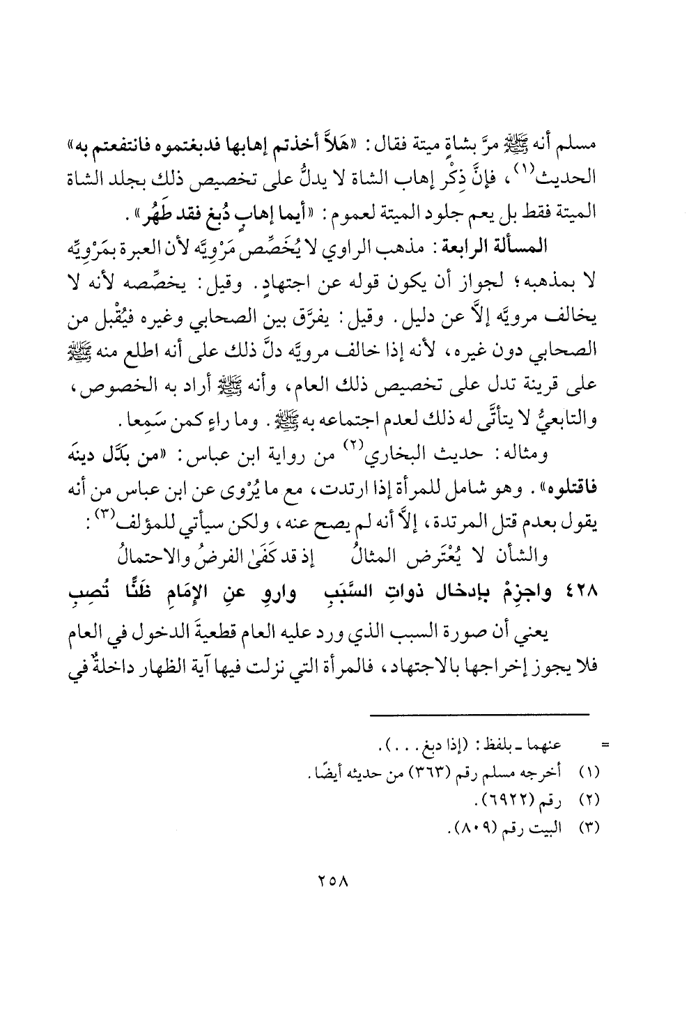 المسألة الرابعة: مذهب الراوي لا يخصص مرويه لان العبرة بمرويه