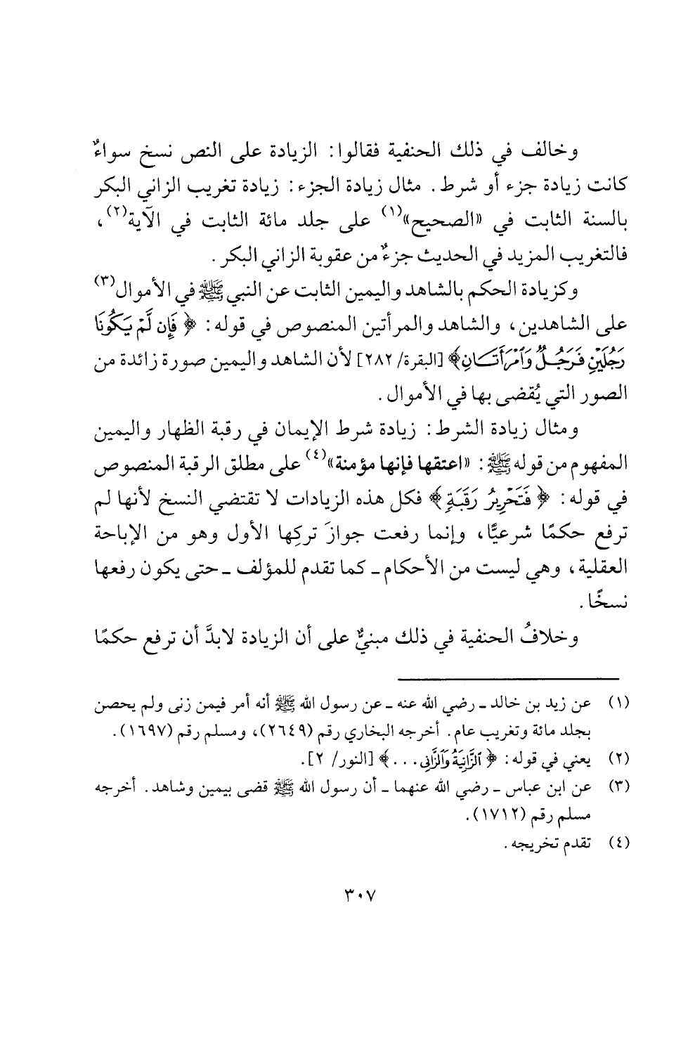 كانت زيادة جزء او شرط. مثال زيادة الجزء: زيادة تغريب الزاني البكر