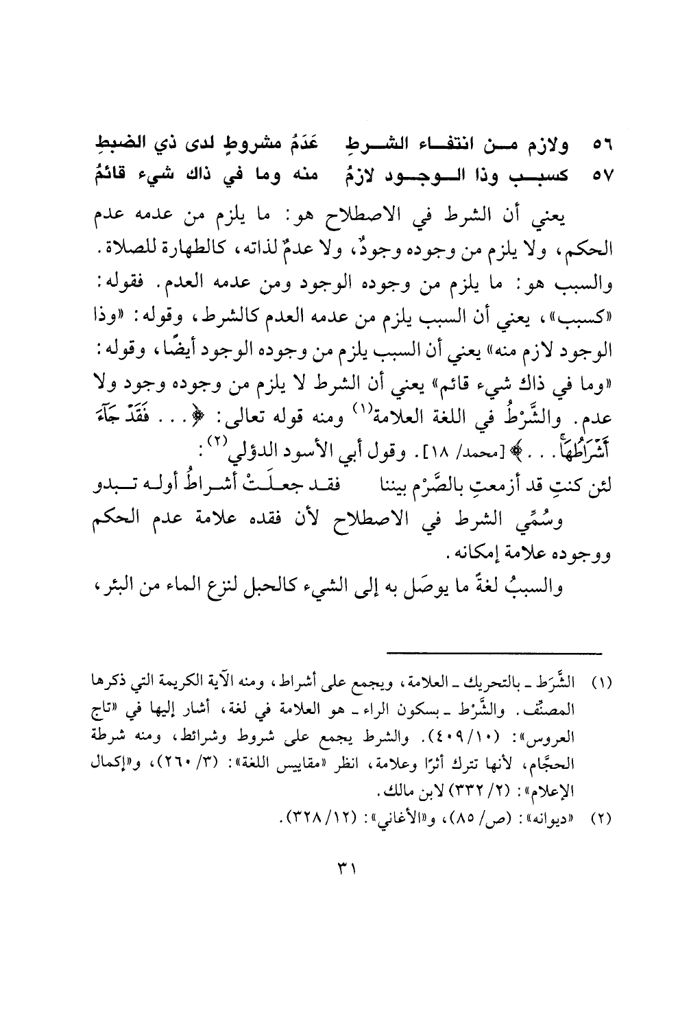 56 ولازم من انتفاء] لشرط عدئم مشروط لدى ذي] لضبط