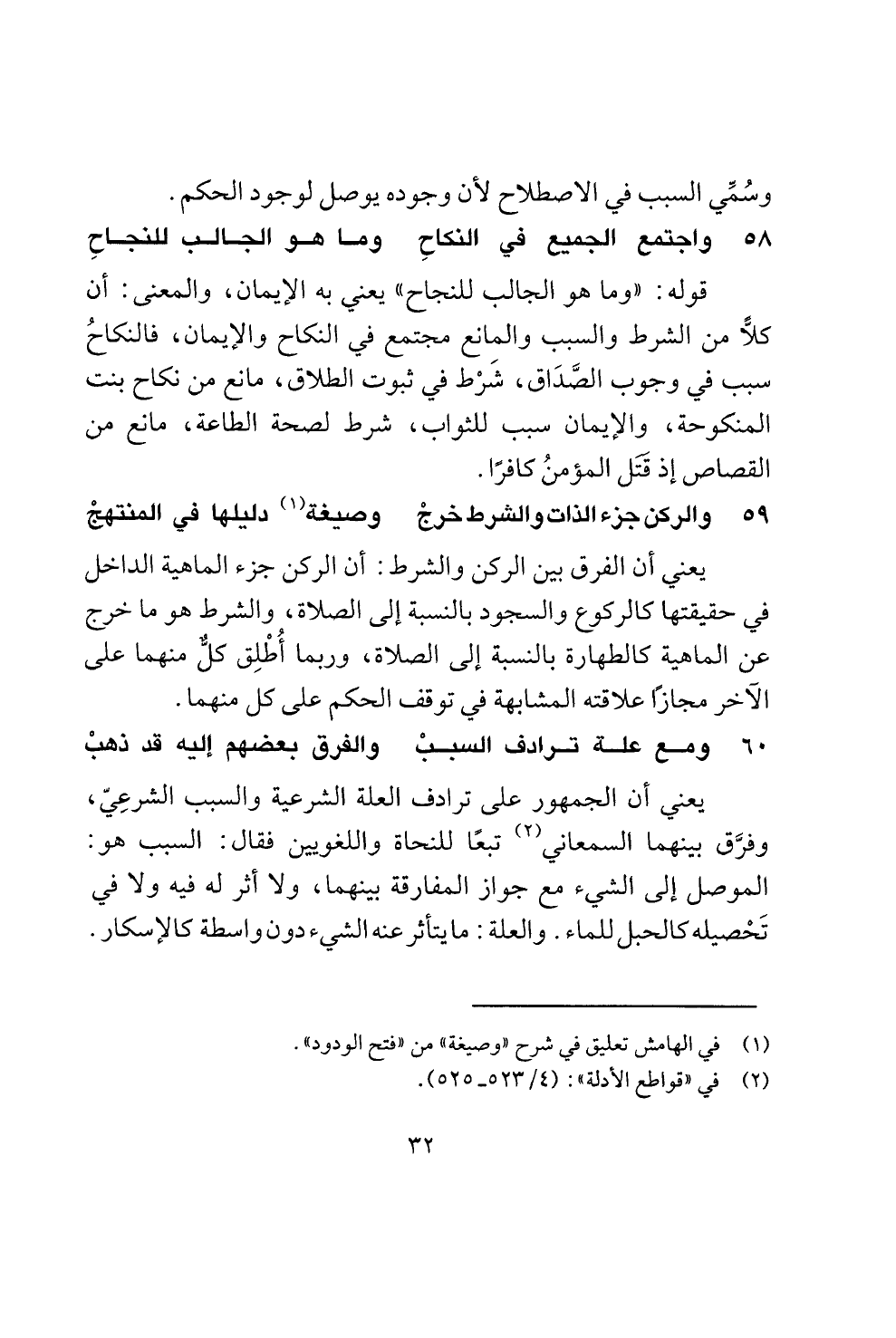 59 والركن جزء الذات والشرط خرج وصيغة (1) دليلها في المنتهج