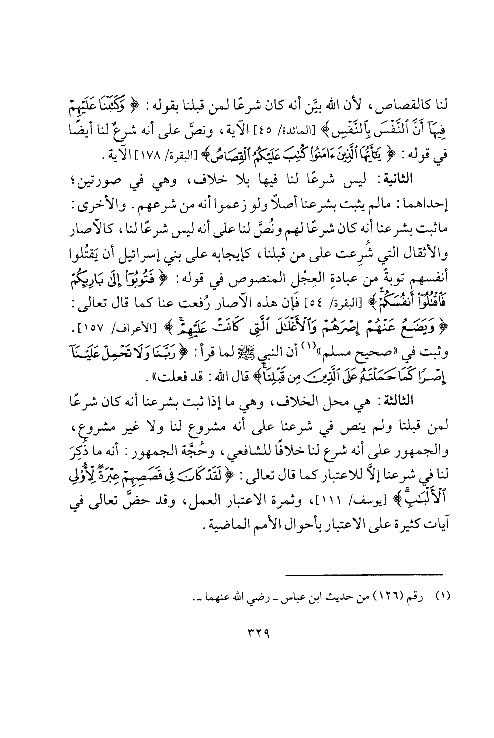 في! ثا أن الئفس بالتفس) [المائدة/ 45] الآية، ونص على أنه شرع لنا أيضا