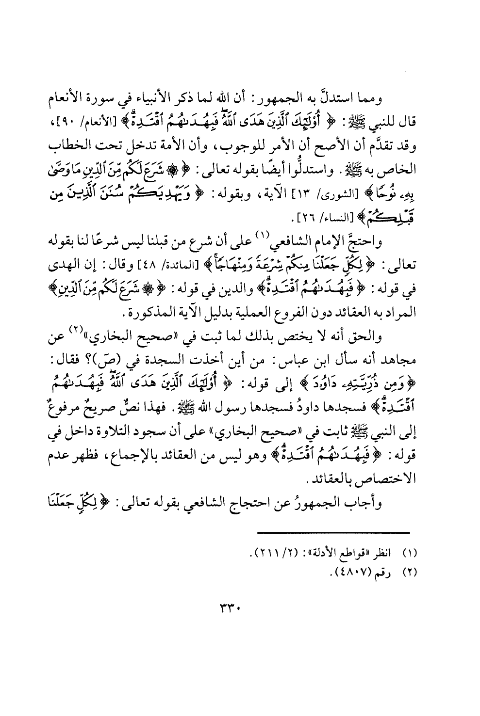 الخاص به غ! يم. واستدلوا ايضا بقوله تعا لى: بهء نوحا > [الشورى/ 13] الاية، وبقوله: < وئهدينبم سنن لذفي من