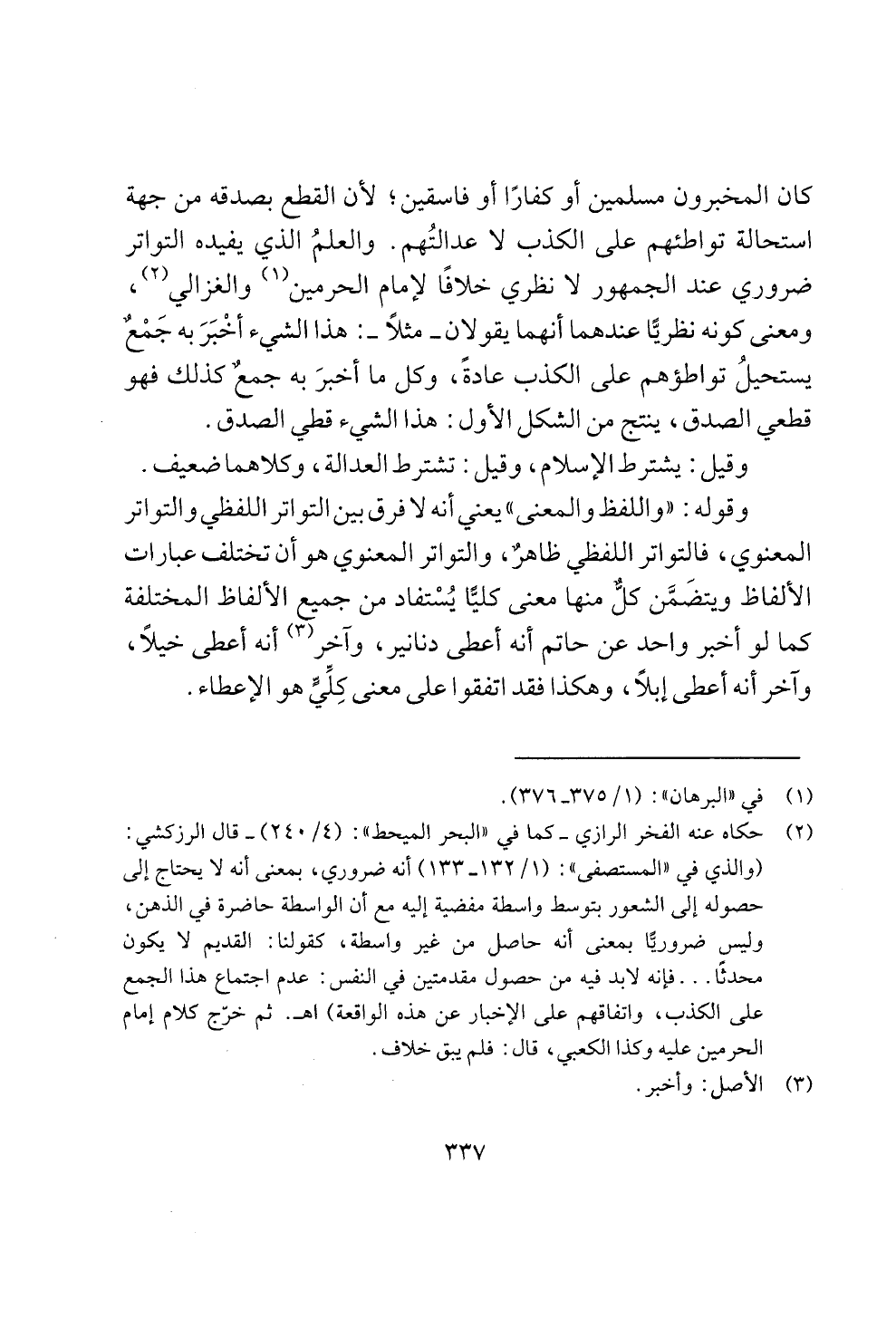 (والذي في " لمستصفى ": (1/ 132 - 133) انه ضروري، بمعنى انه لا يحتاج إلى