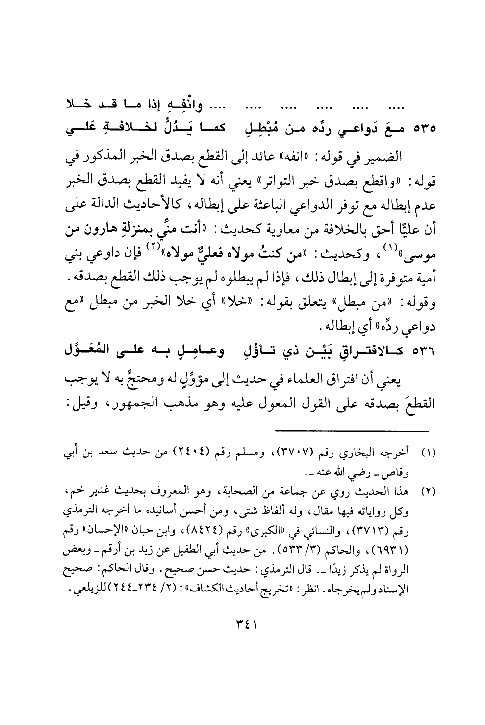 536 كالافتر] ق بين ذي تاول وعامل به على المعول