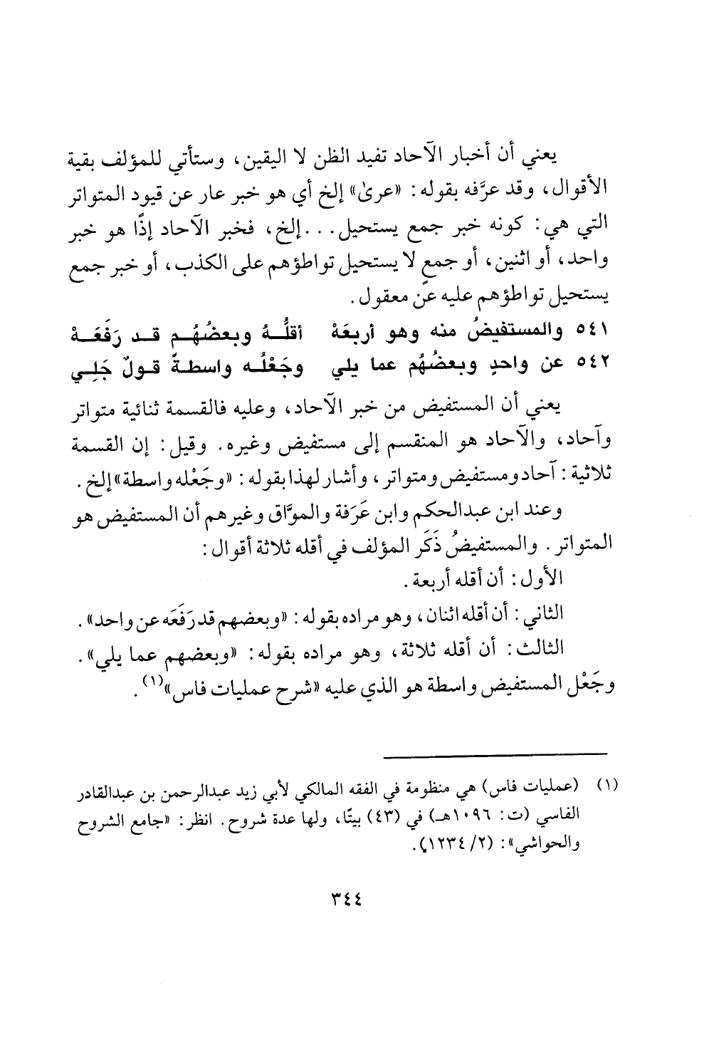 وجعل المستفيض واسطة هو الذي عليه "شرح عمليات فاس " (1).