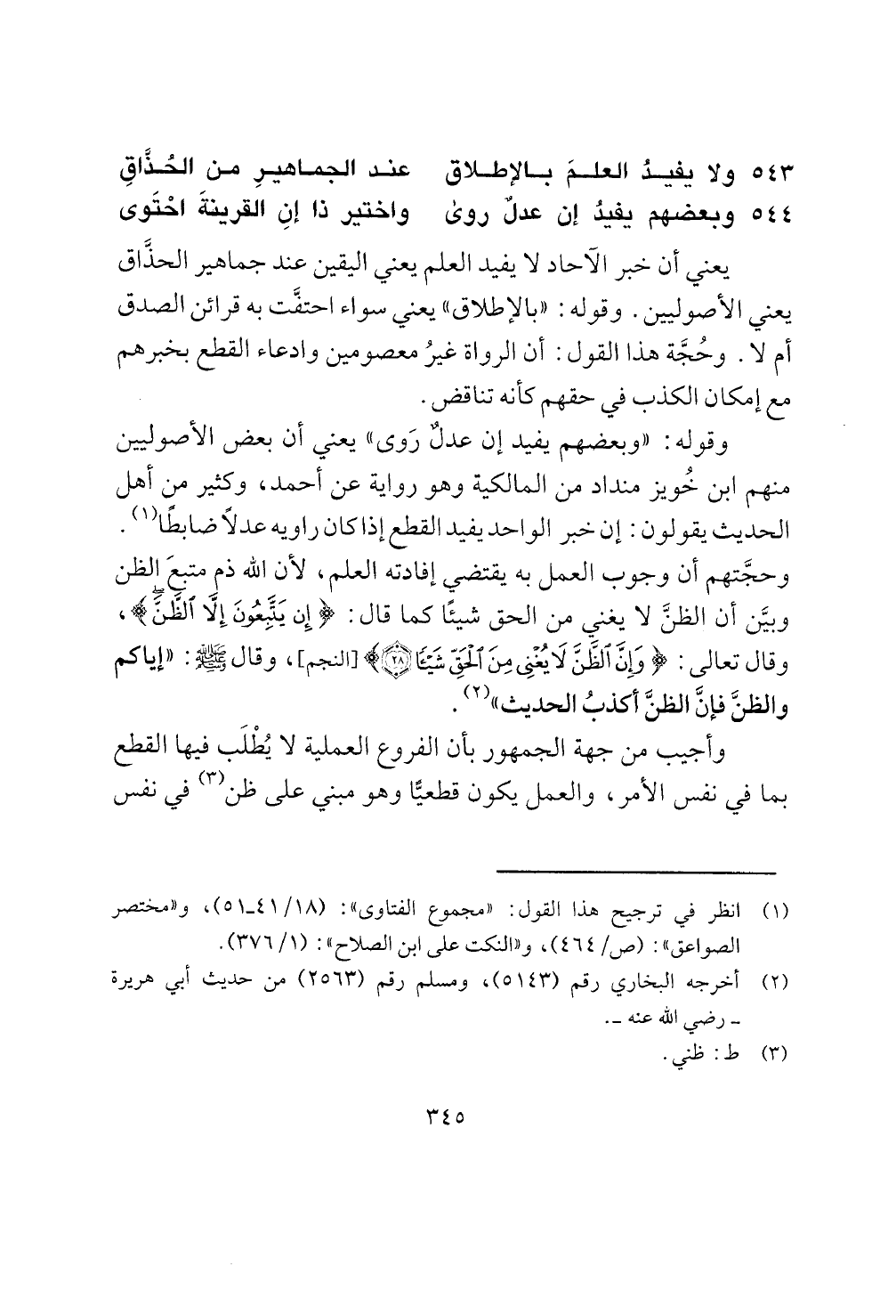 543 ولا يفيد العلم بالإطلاق عند] لجماهير من الحذاق