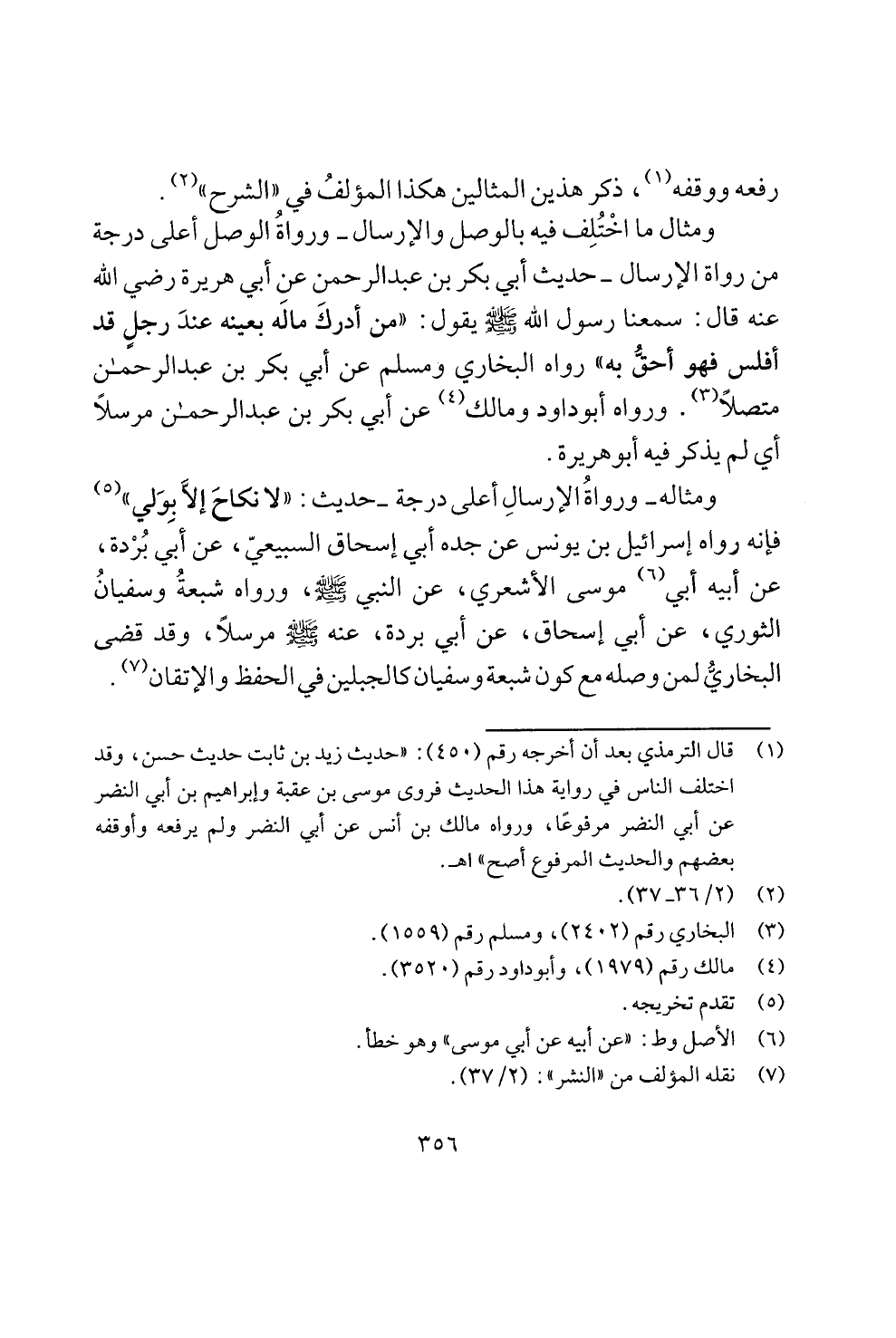 ومثال ما اختلف فيه بالوصل والإرسال - ورواة الوصل اعلى درجة