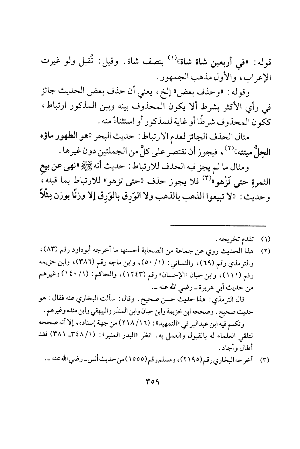الثمرة حتى تزهو" (3) قلا يجوز حذف "حتى تزهو" للارتباط بما قبله،