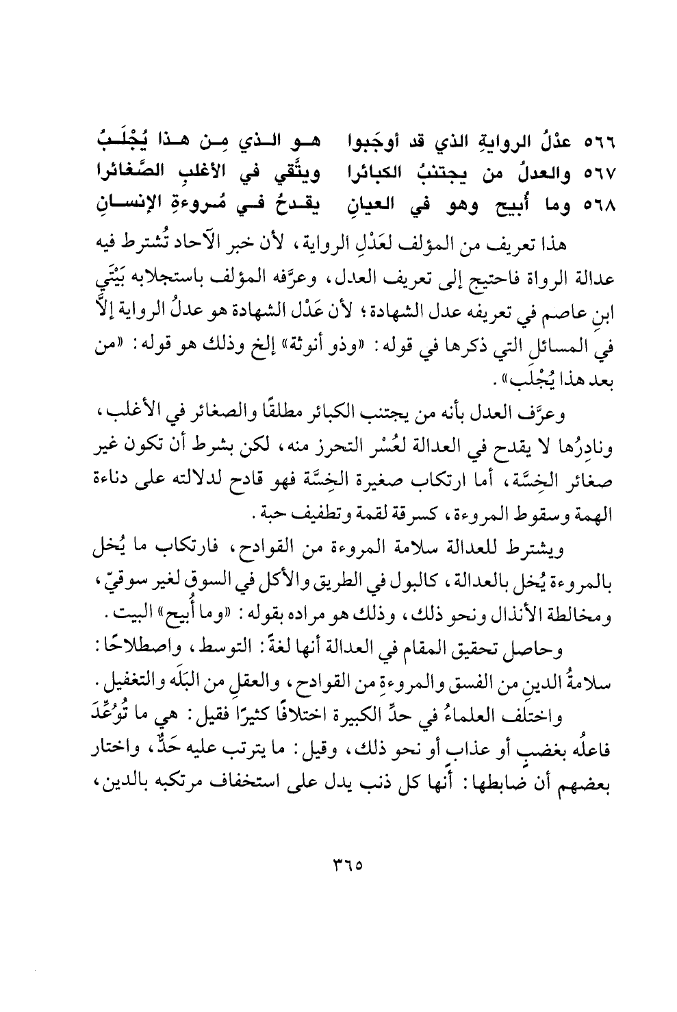 عدالة الرواة فاحتيح إلى تعريف العا-ل، وعرفه المؤلف باستجلابه بيتي