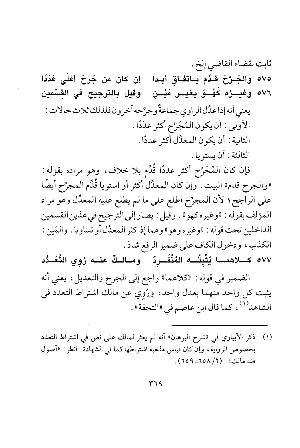 575 والجزح قدم باتفاق أبدا ان كان من جرح أعلى عددا
