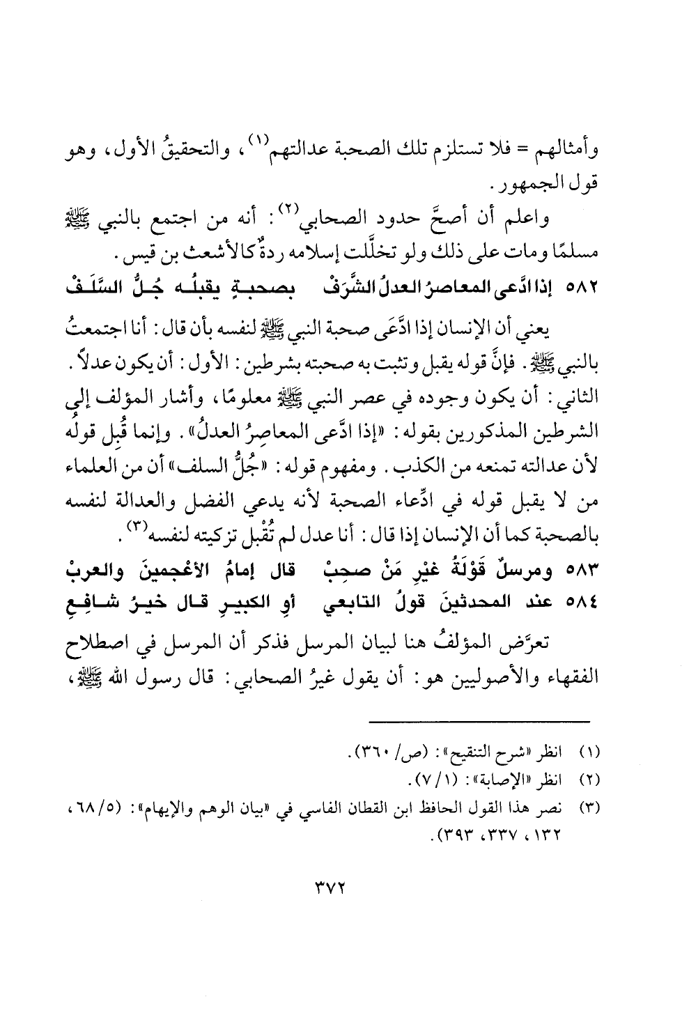 582 اذا ادعى المعاصزالعد 4 الشرف بصحبة يقبفه خل السلف
