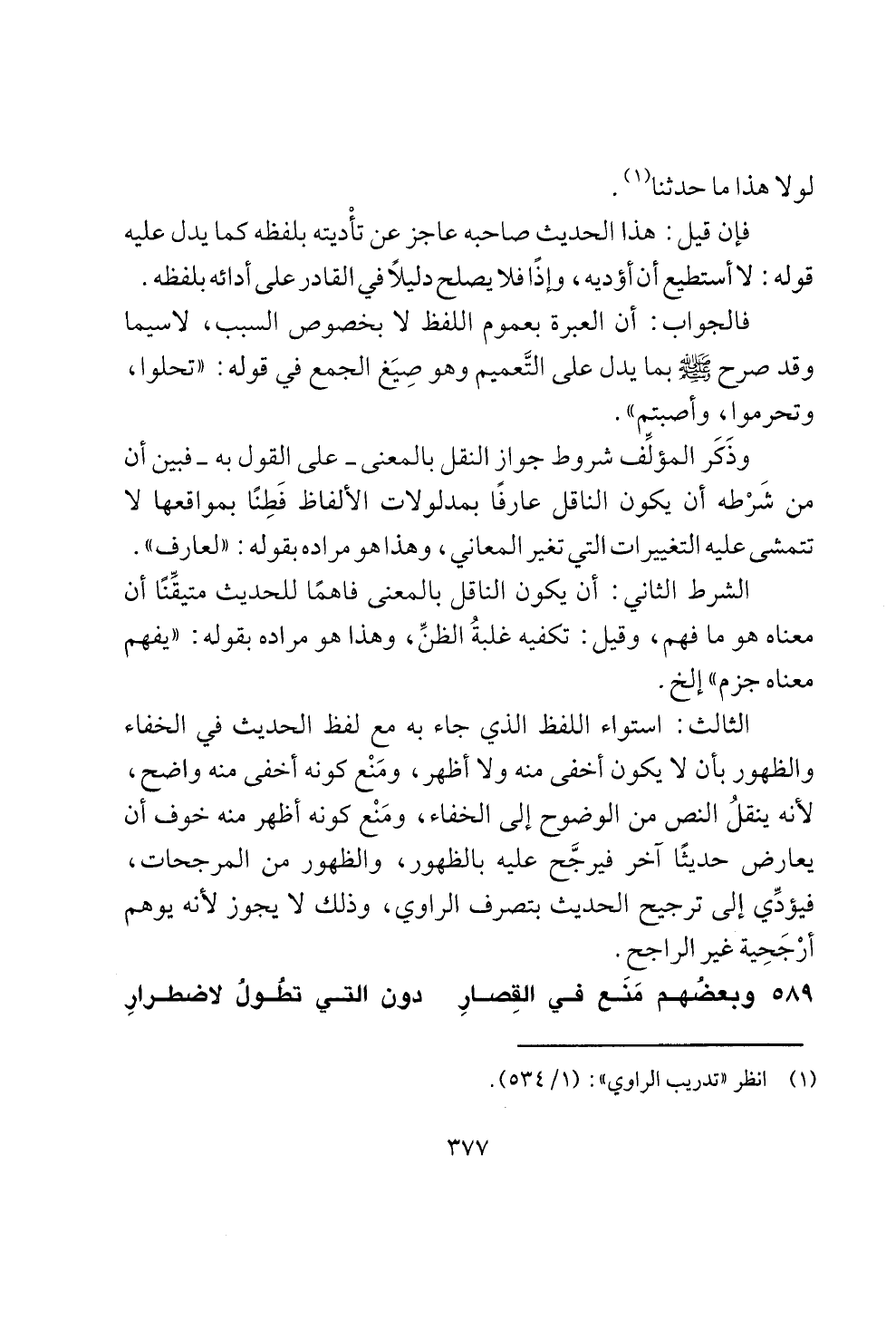 وذكر المؤلف شروط جواز النقل بالمعنى - على القول به - فبين ا ن