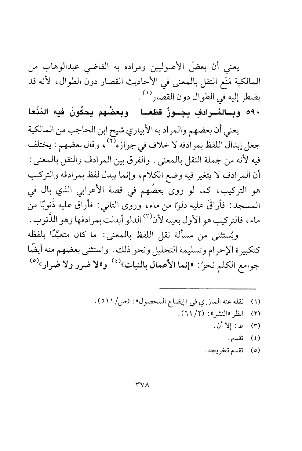 590 وبالمرادف يجوز قطعا وبعضهم يحكون فيه المنعا