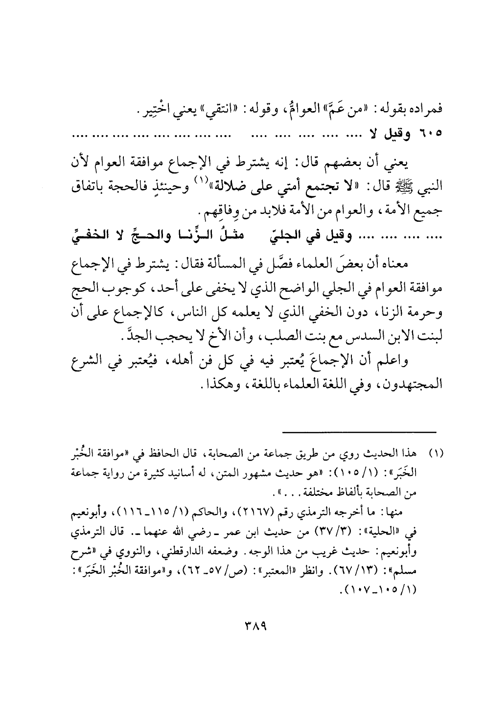 الخبر": (1/ 05 1): "هو حديث مشهور المتن، له أسانيد كثيرة من رواية جماعة