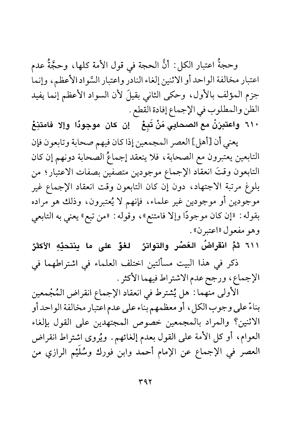 وحجة اعتبار الكل: أن الحجة في قول الامة كلها، وحجة عدم