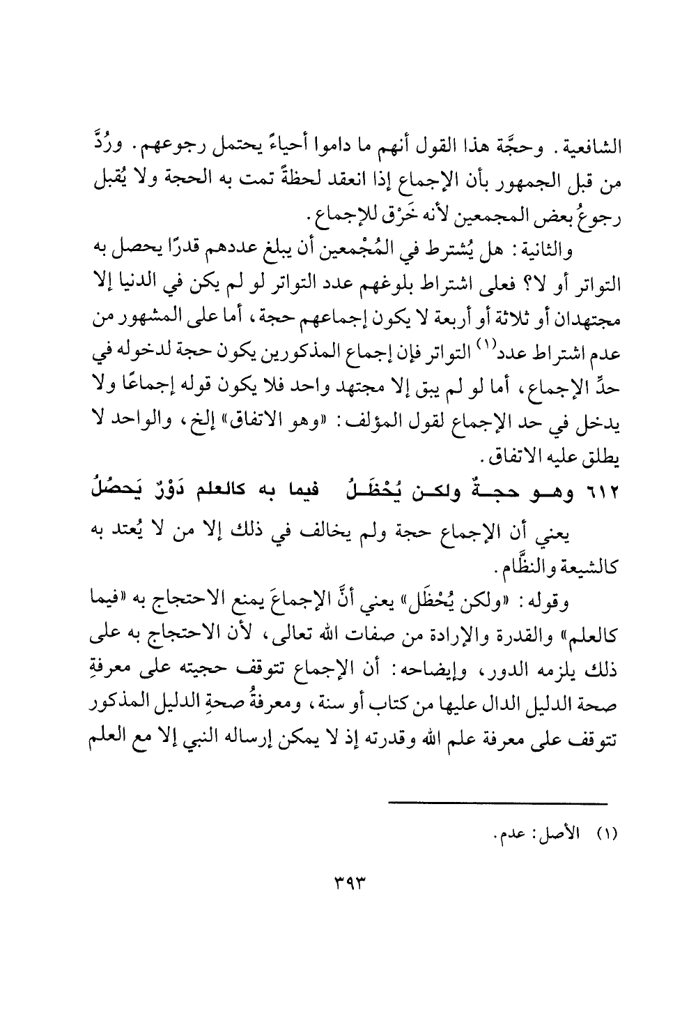 612 وهو حجة ولكن ئحظل فيما به كالعلم دور يحضل
