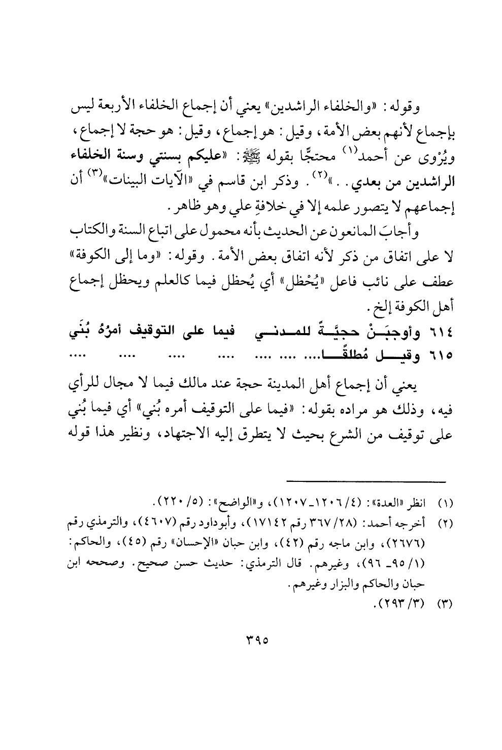 وقوله: "والخلفاء الراشدين " يعتي أن إجماع الخلفاء الاربعة ليس