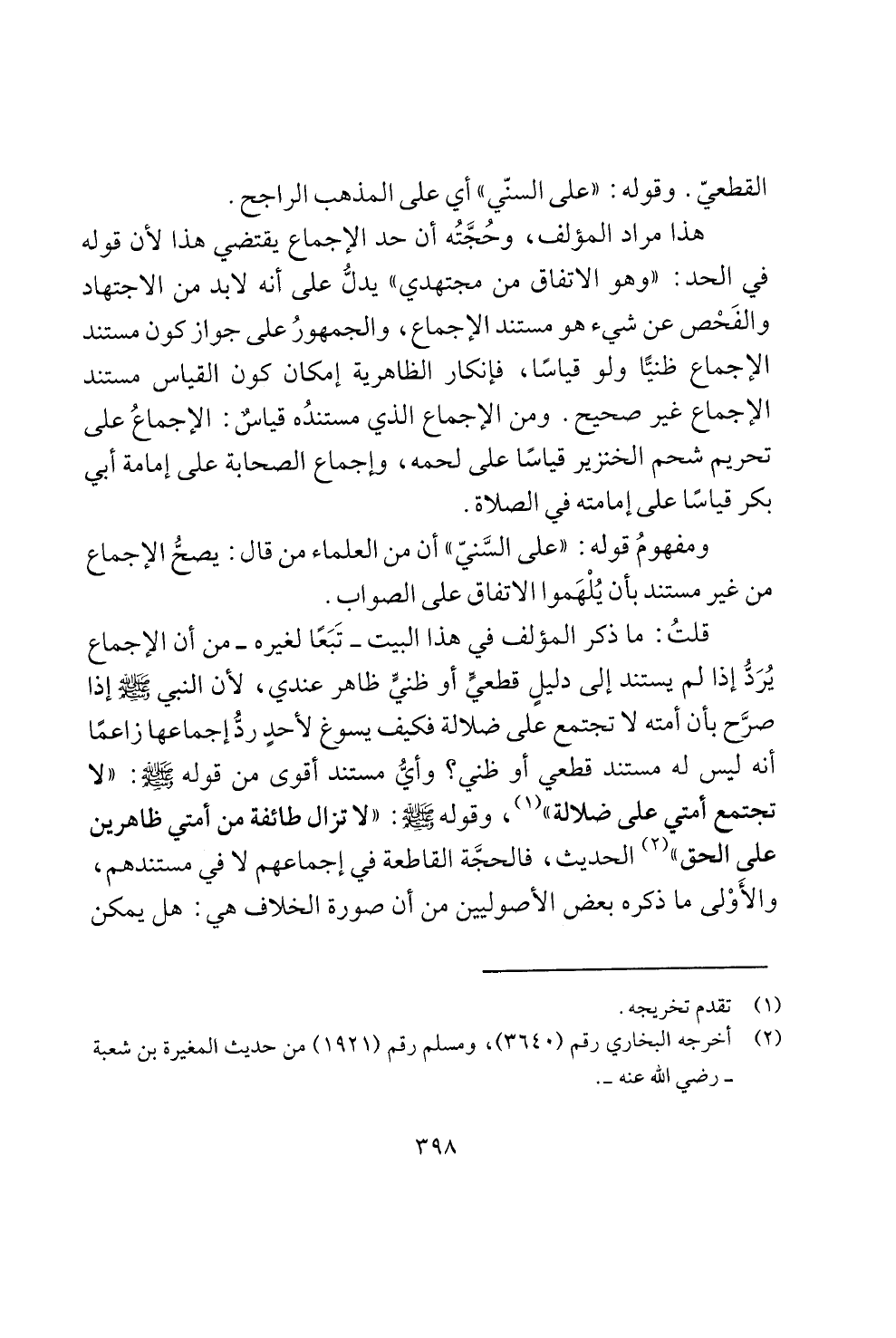 قلت: ما ذكر المؤلف في هذا البيت - تبعا لغيره - من أن الإجماع