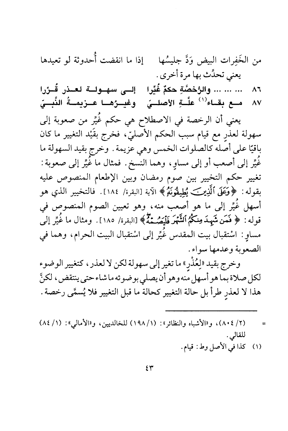 86 ... ... ... و] لرخصة حكم غيرا إلى سهولة لعذر قرر 1