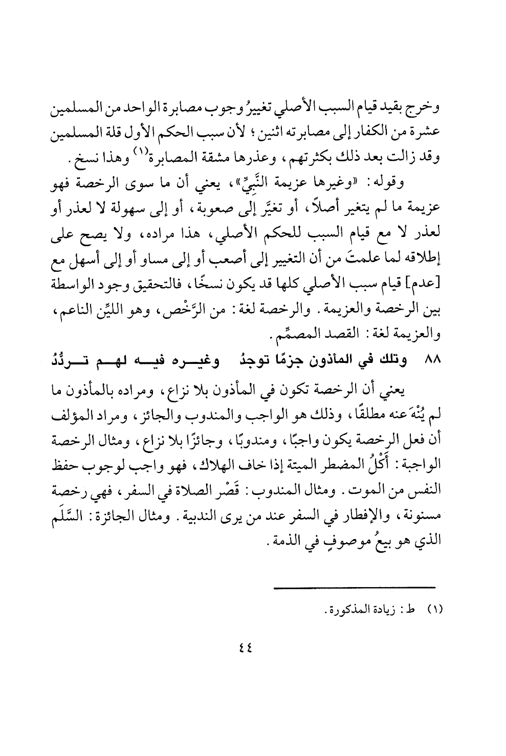 وقد زالت بعد ذلك بكثرتهم، وعذرها مشقة المصابرة (1) وهذا نسخ.