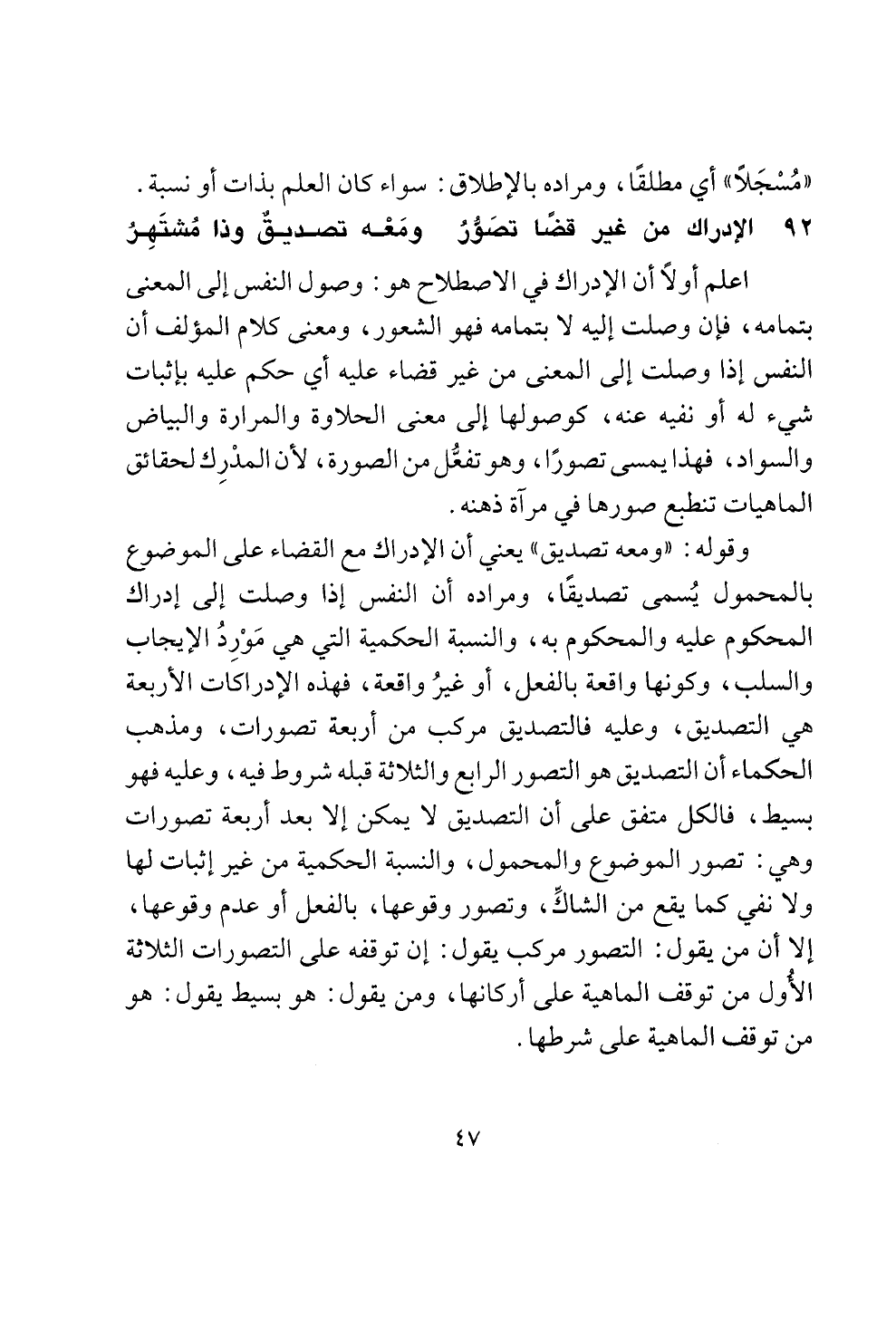 92 الإدر 1 ك هر غير قضا تصور ومعه تصديق وذا مشتهر