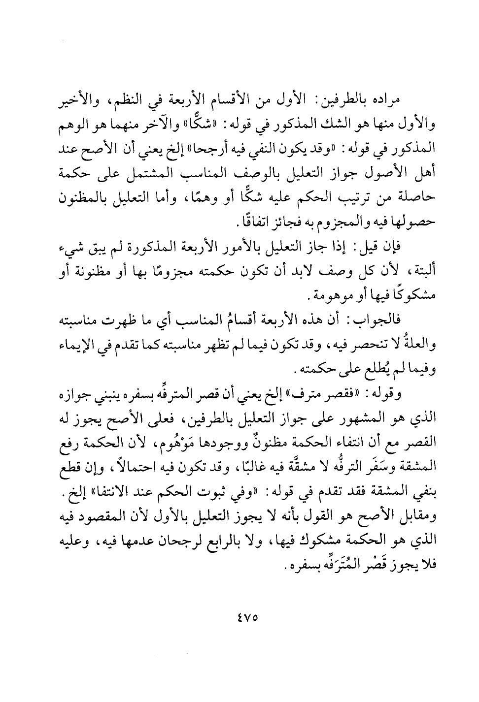 القصر مع أن انتفاء الحكمة مظنون ووجودها موهوم، لأن الحكمة رفع