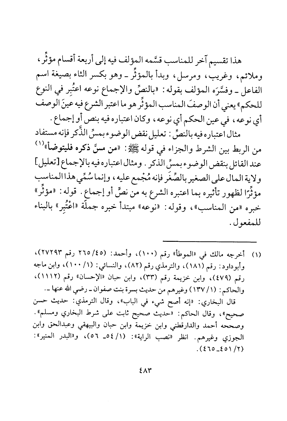 مثال ا عتباره فيه با لنص: تعليل نقض ا لوضوء بمس الذكر فا نه مستفاد