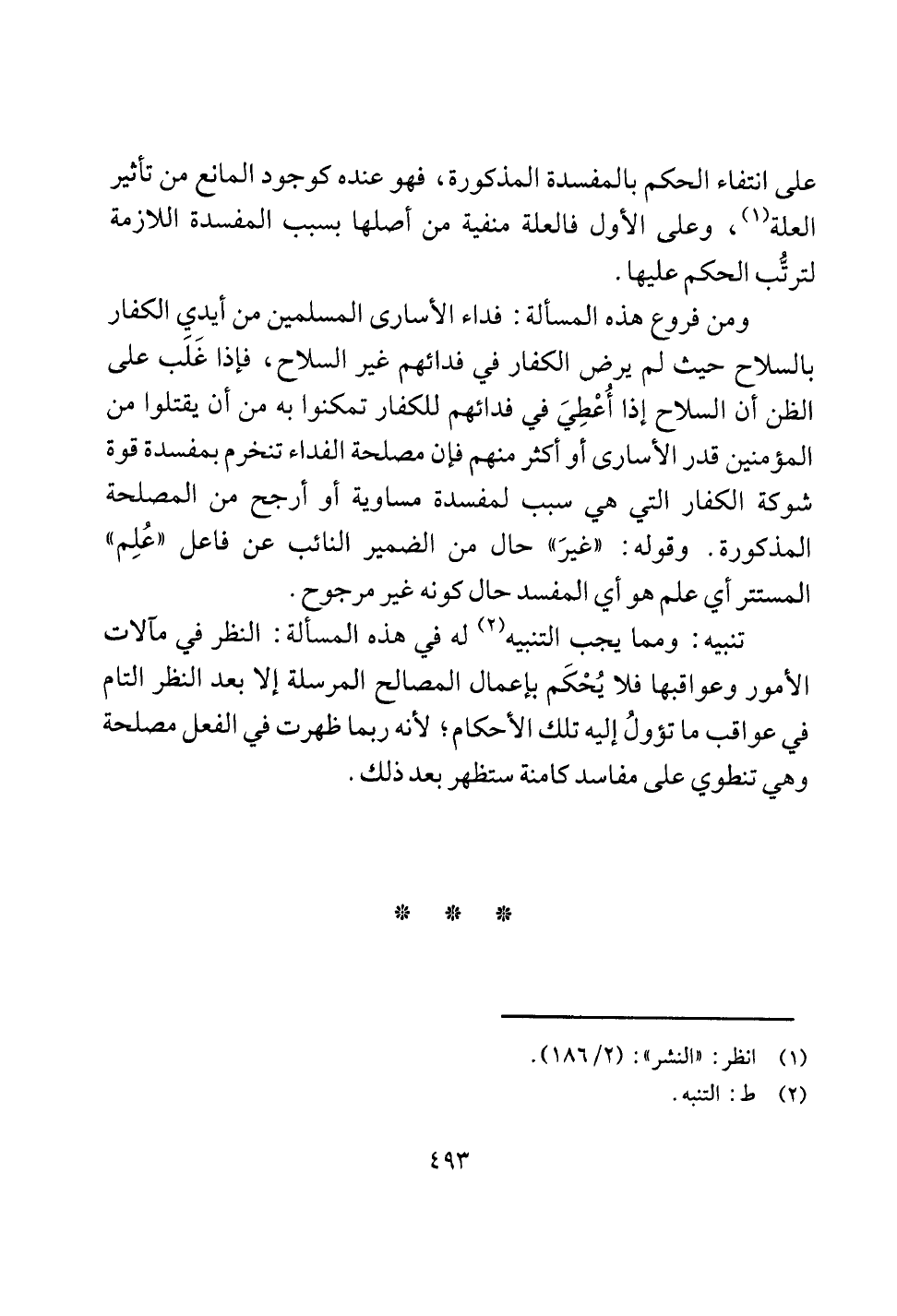 الأمور وعواقبها فلا يحكم باعمال المصالج المرسلة إلا بعد النظر التام