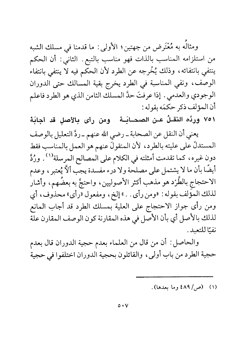 751 ورذه النقل عن الصحابه ومن رأى بالأصل قد أجابه