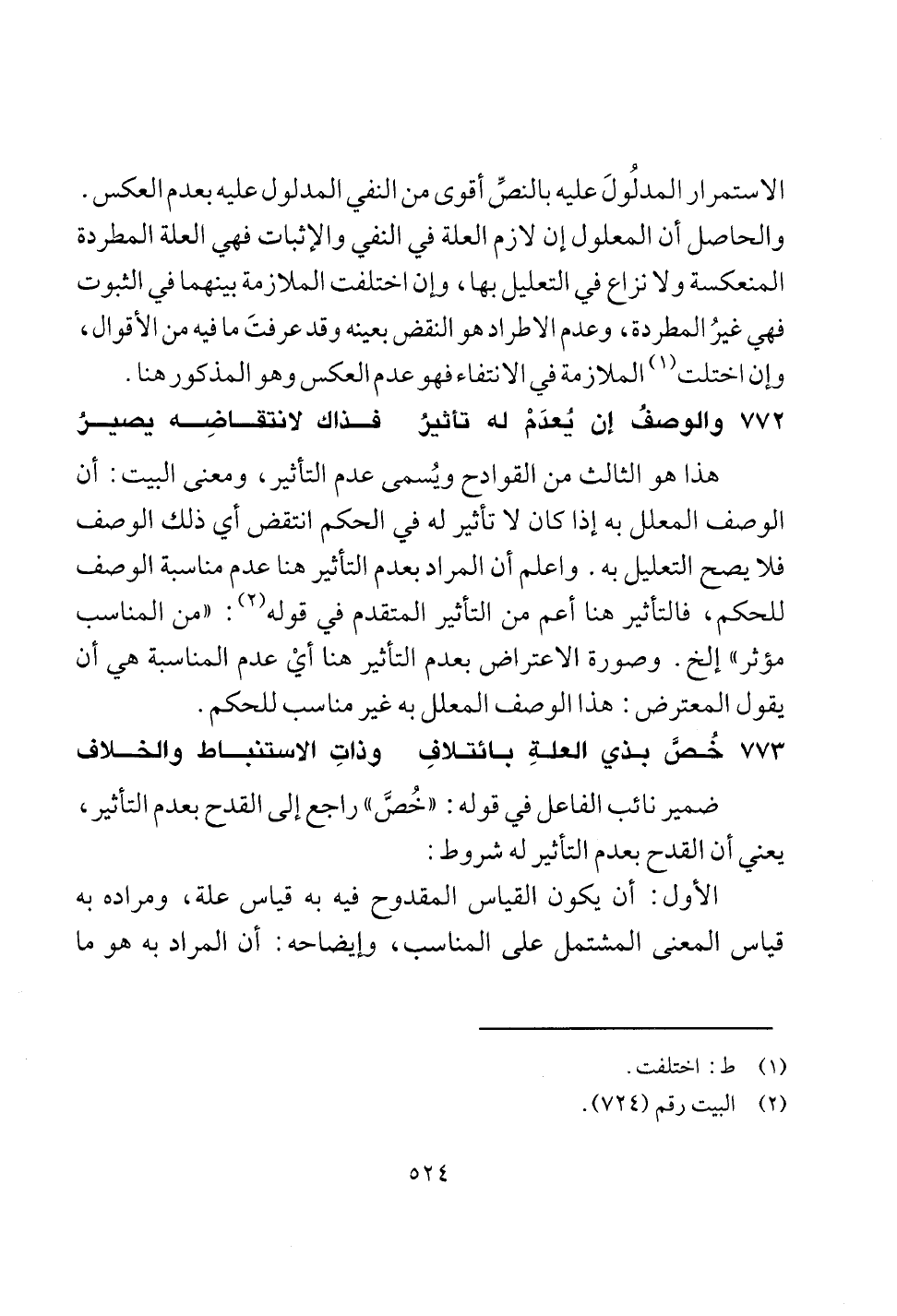 772 والوصف إن ئعدم له تأثيز فذاك لانتقاضه يصيز