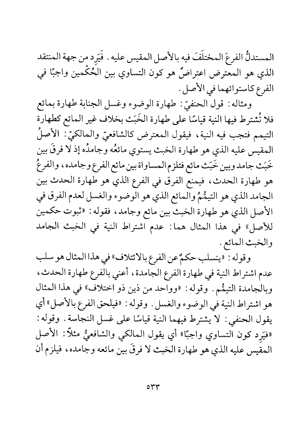 خبث جامد وبين خبث ما ئع فتلزم المساواة بين ما ئع الفرع وجامده، والفرع