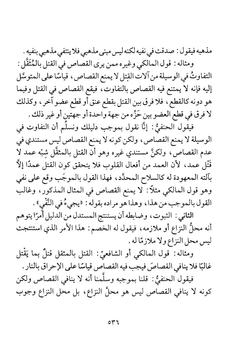 ومثاله: قول المالكي وغيره سمن يرى القصاص في القتل بالمثقل: