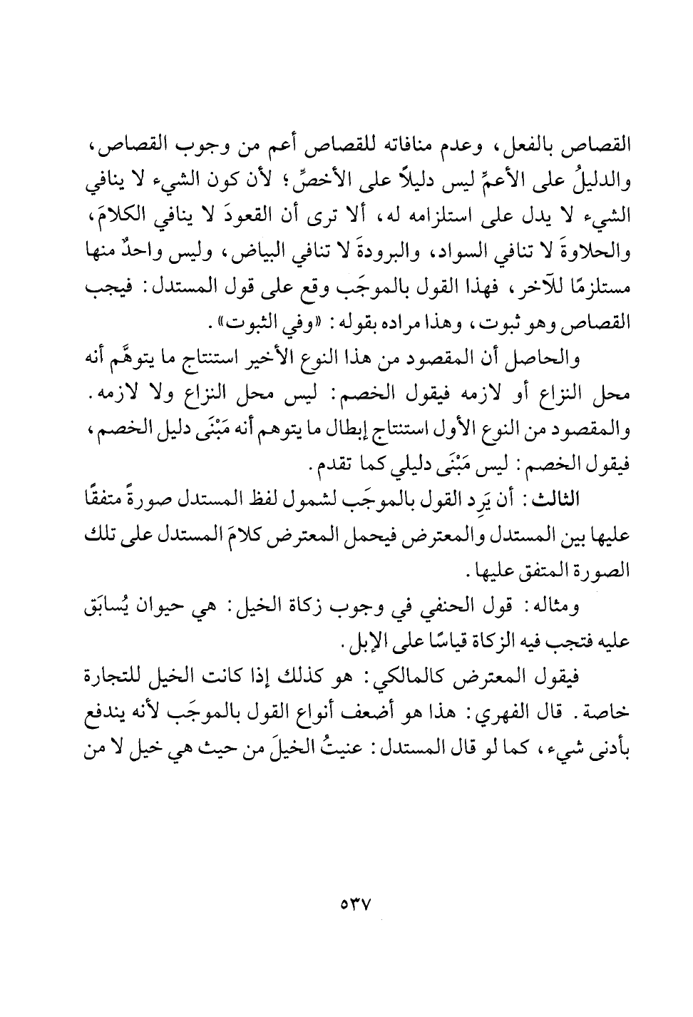 خاصة. قال الفهري: هذا هو أضعف أنواع القول بالموجب لانه يندفع