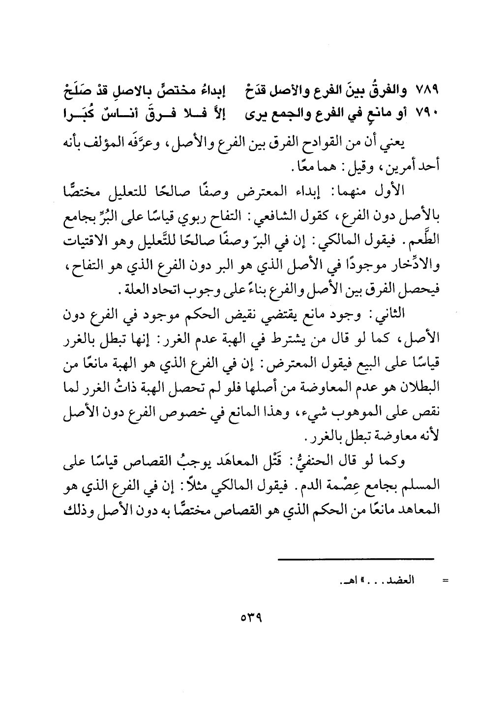 789 والفرق بين الفرع والأصل قدح ابداء مختص بالاصل قد صلح