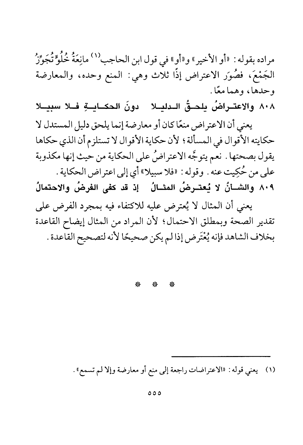 808 والاعتراض يلحق 1 لدليلا دون الحكاية فلا سبيلا