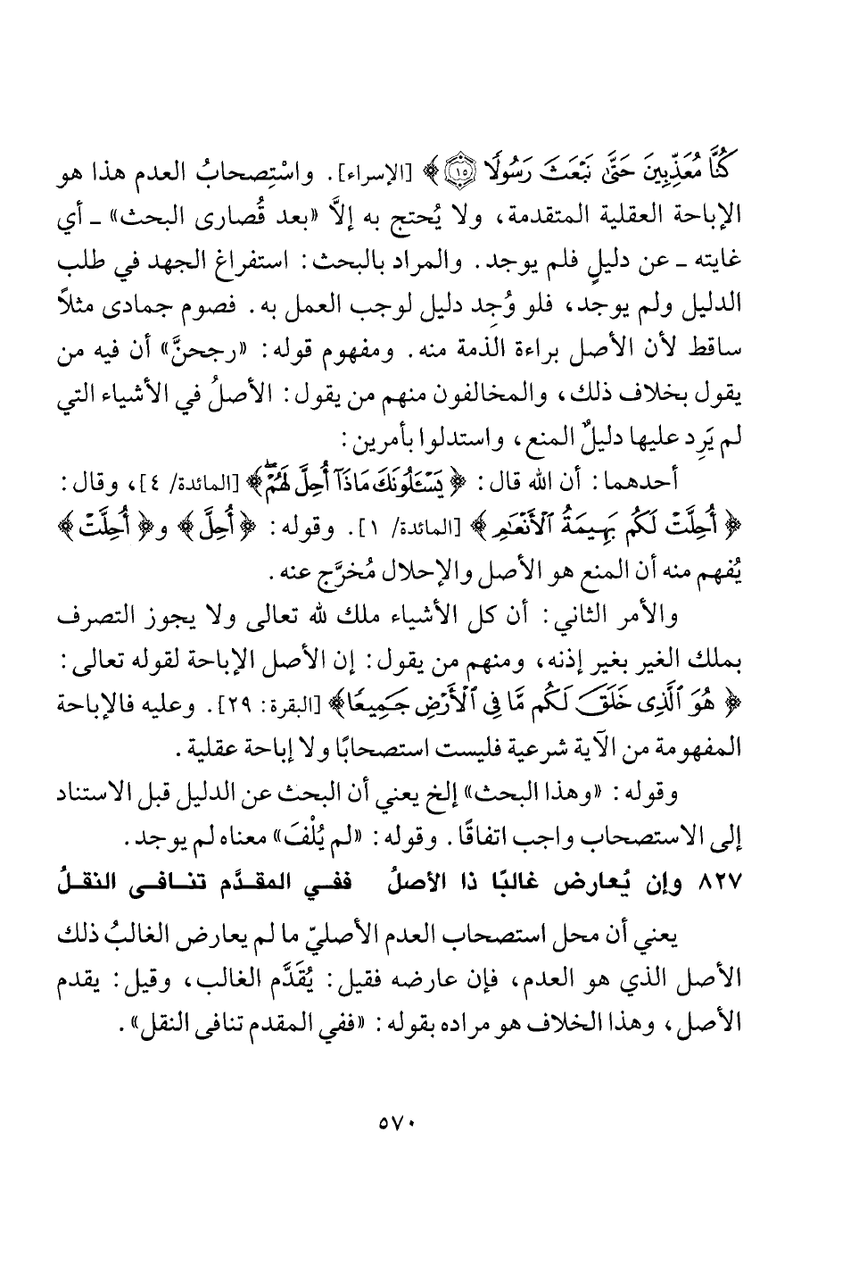 كثا مغدبين حتى تجعث رسولا، ئى"بم > [ا! سراء]. واستصحاب العدم هذا هو